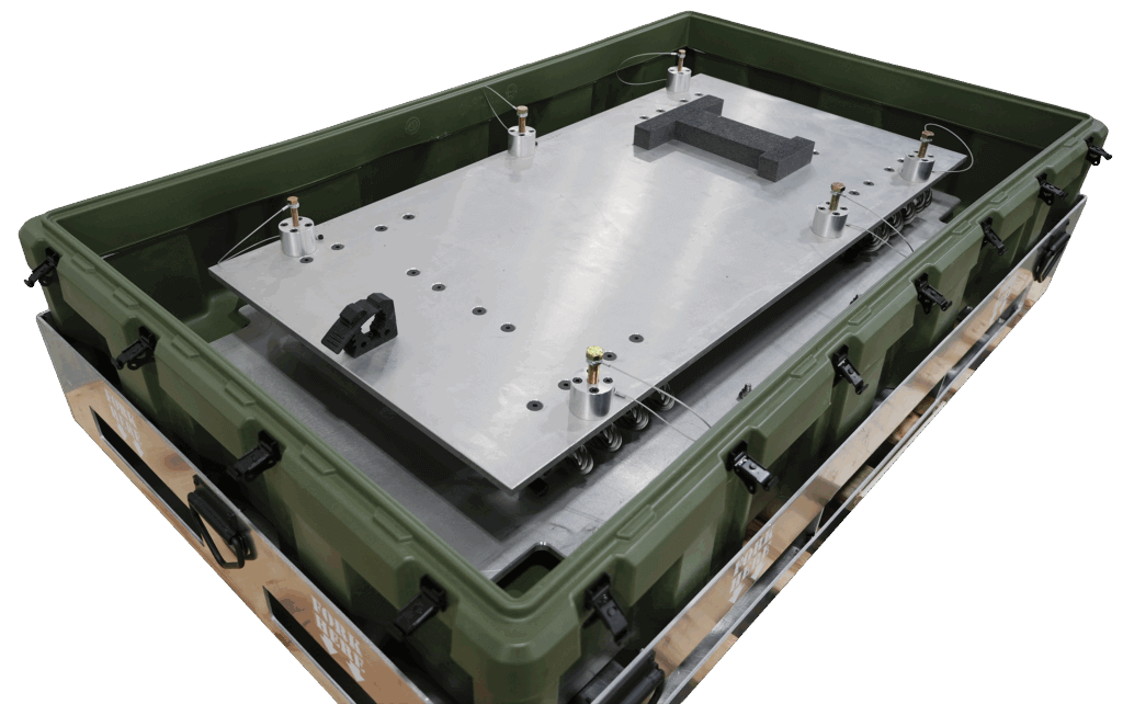 Another key innovation is the wire rope isolator system, designed to manage static load. The wire rope is a large steel cable wrapped into the shape of a circle. The system provides a method to contain and control the static load of the container, allowing two to three inches of controlled movement within the case.